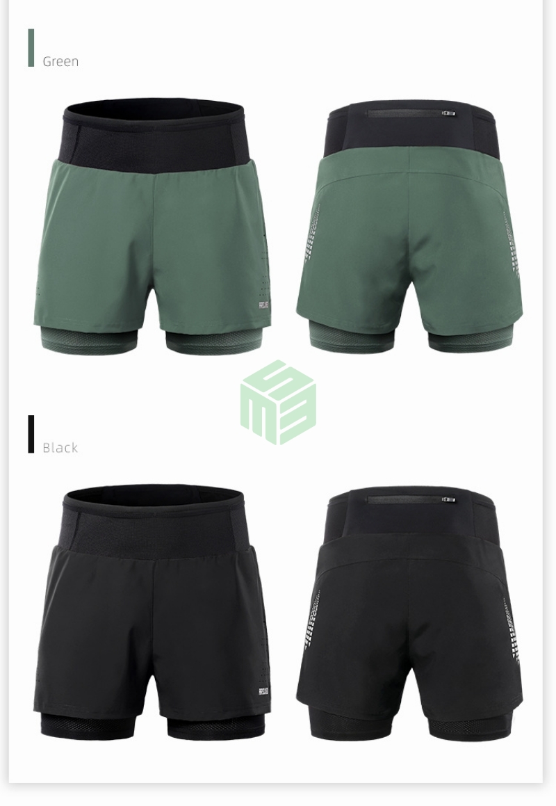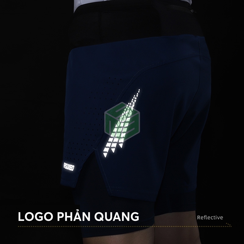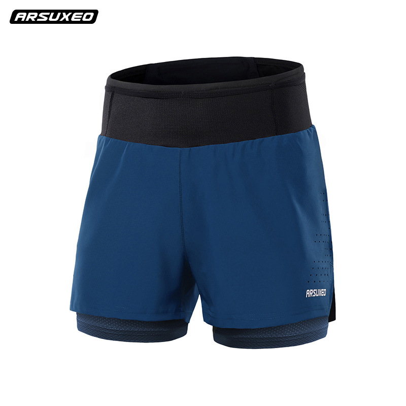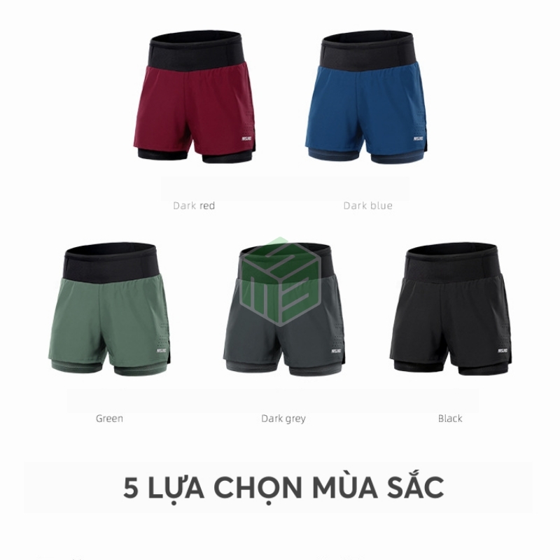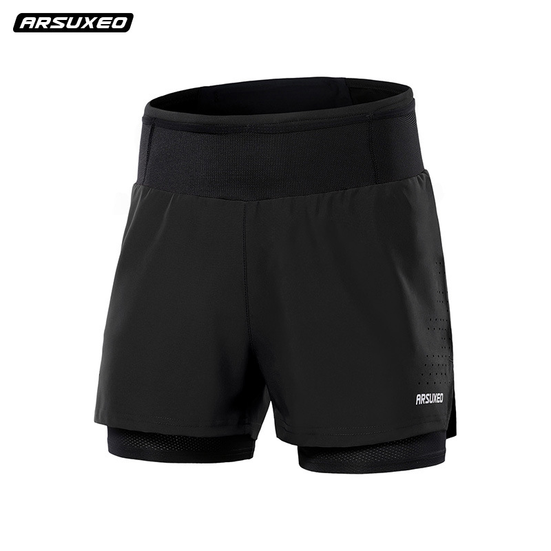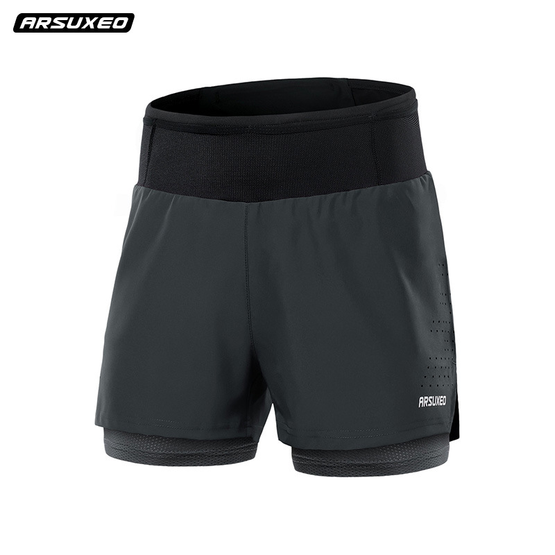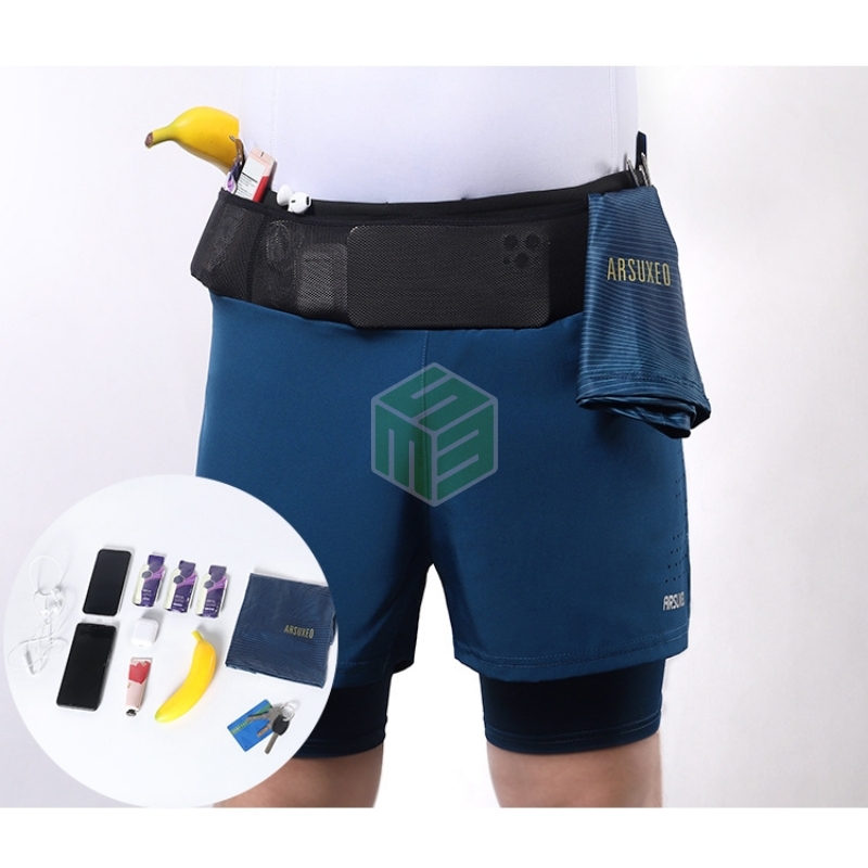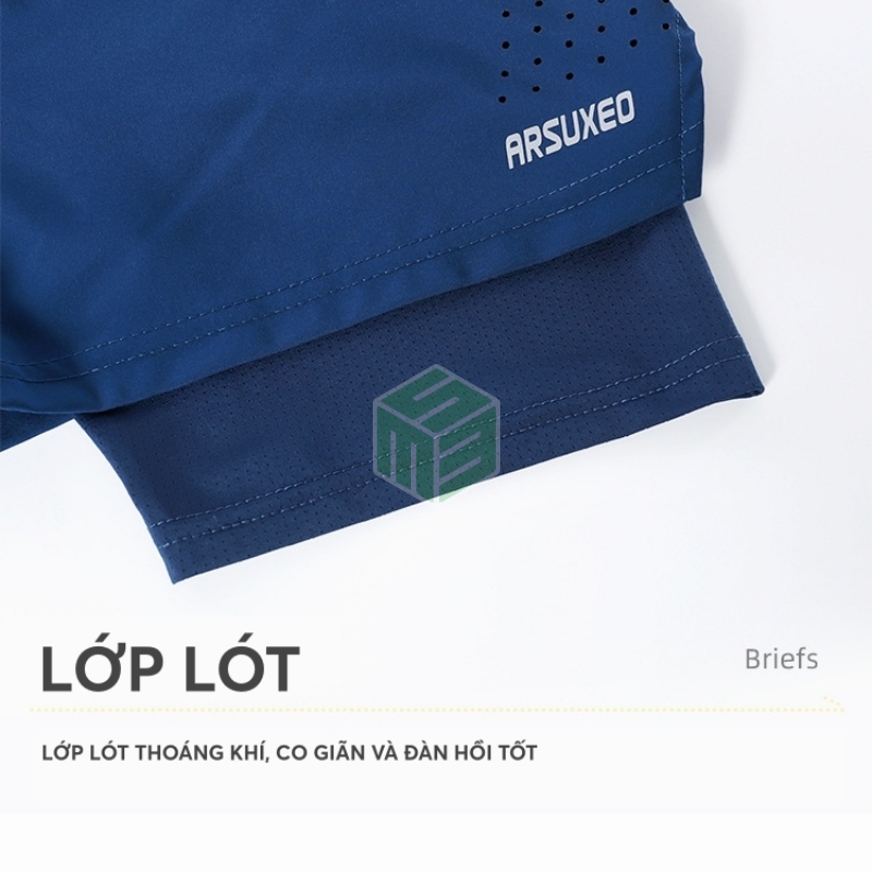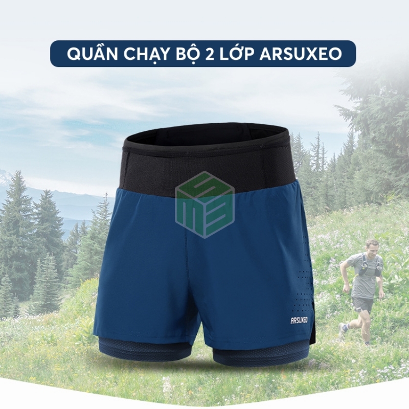 Quần short nam chạy bộ, chạy trail 2 lớp túi lưới đa năng Arsuxeo B233