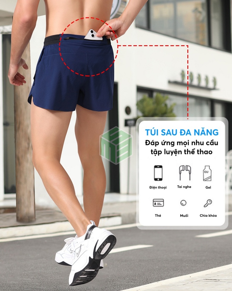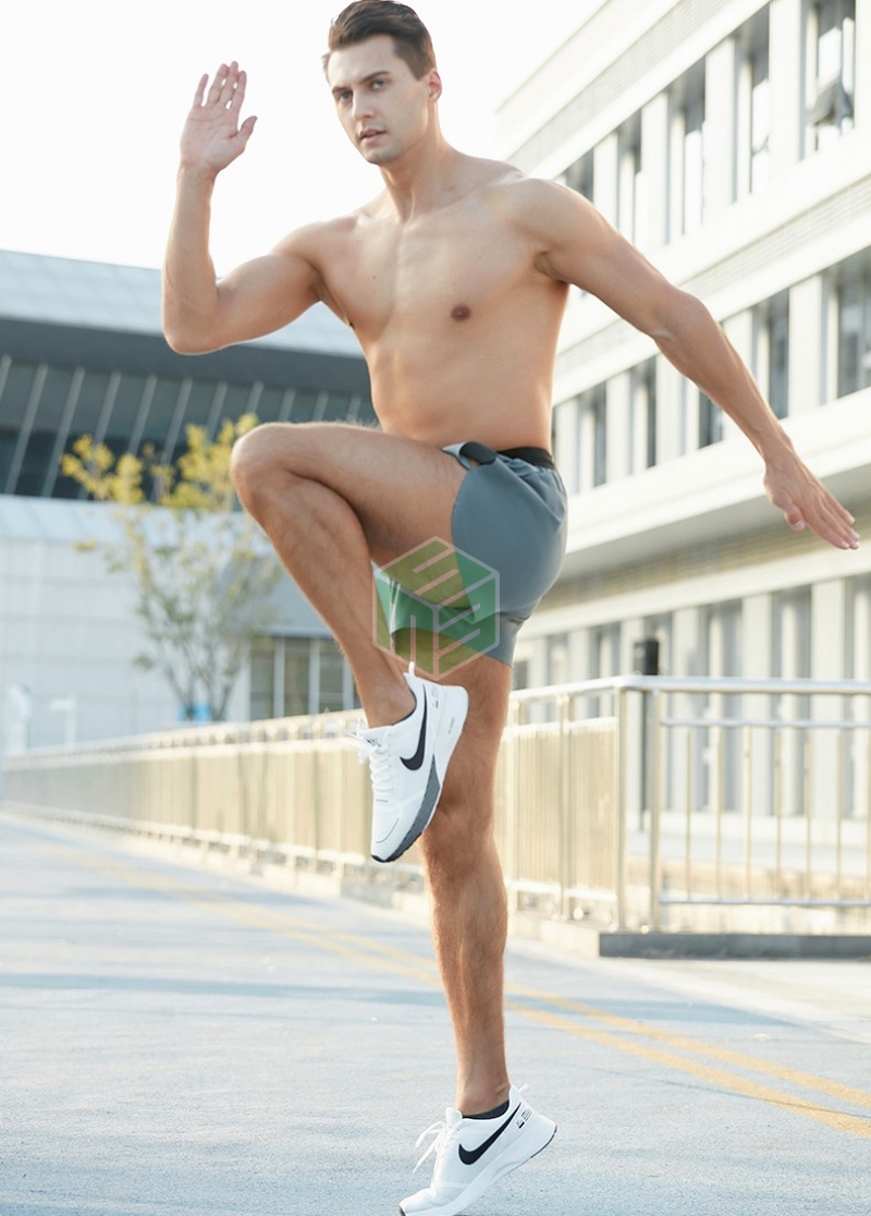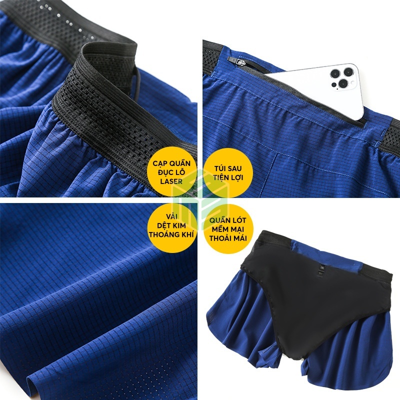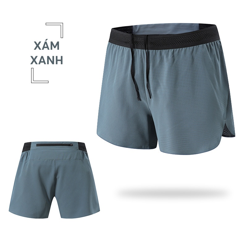 Quần short nam chạy bộ, chạy trail 2 lớp thoáng khí túi sau để điện thoại Leego DK80025